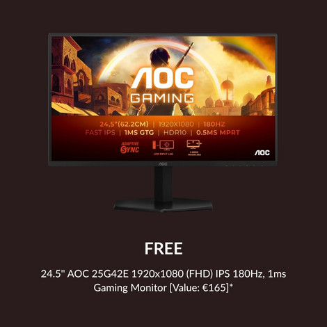 *Free gaming monitor only applies to Gaming PCs over €2999 [Excludes Custom Orders]