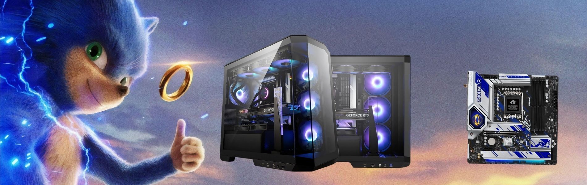 This Sonic-inspired build features the limited edition ASRock Sonic motherboard, with blue-themed RGB and high-velocity design elements. For fans of speed and SEGA.