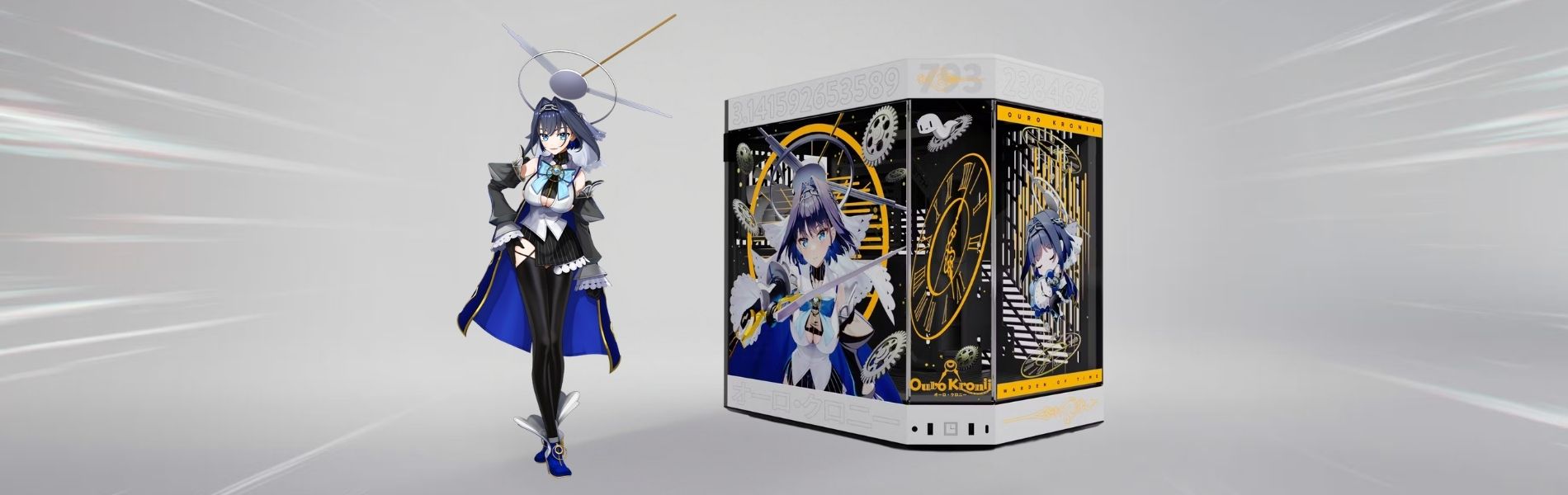 A tribute to Hololive’s Ouro Kronii — this PC is a bold, limited-edition showcase using the Hyte Y60 Ouro Kronii case. Black, white, gold, and infinite flair.