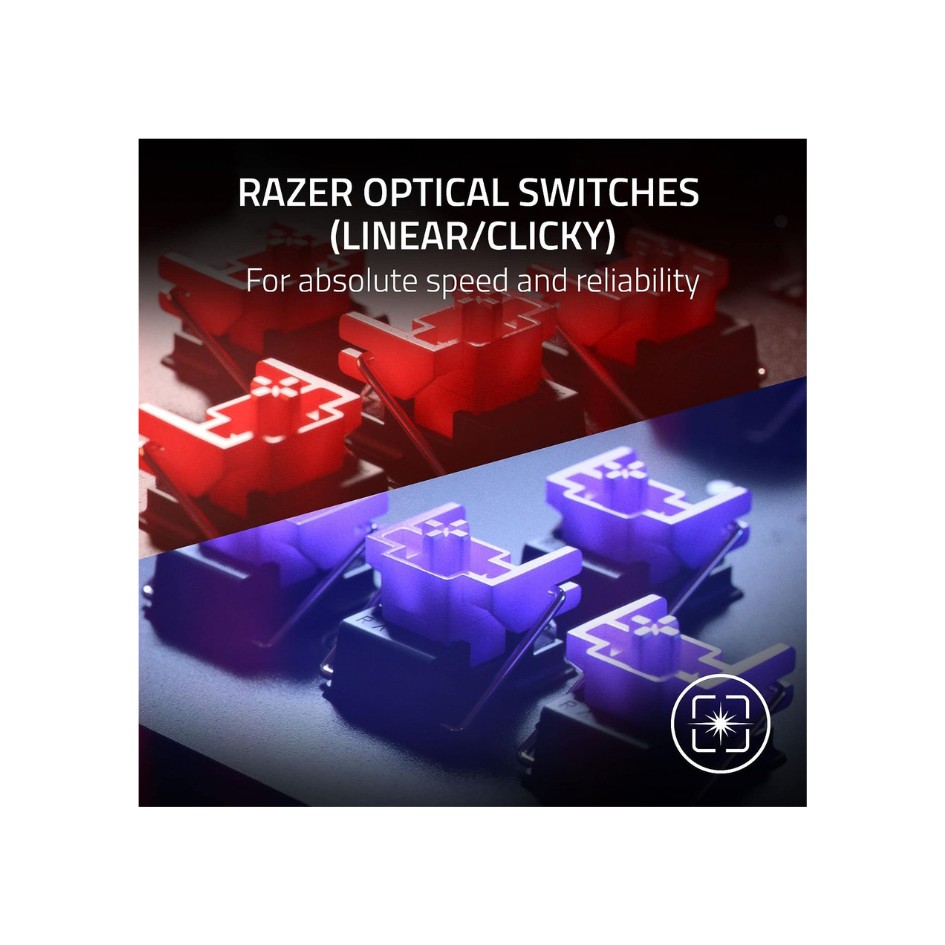 - Razer Linear Optical Switches Gen-2: Improved with sound dampeners for an even quieter typing experience, the smooth, consistent switches are now also more responsive with up to true 8000Hz polling rate for lower input latency